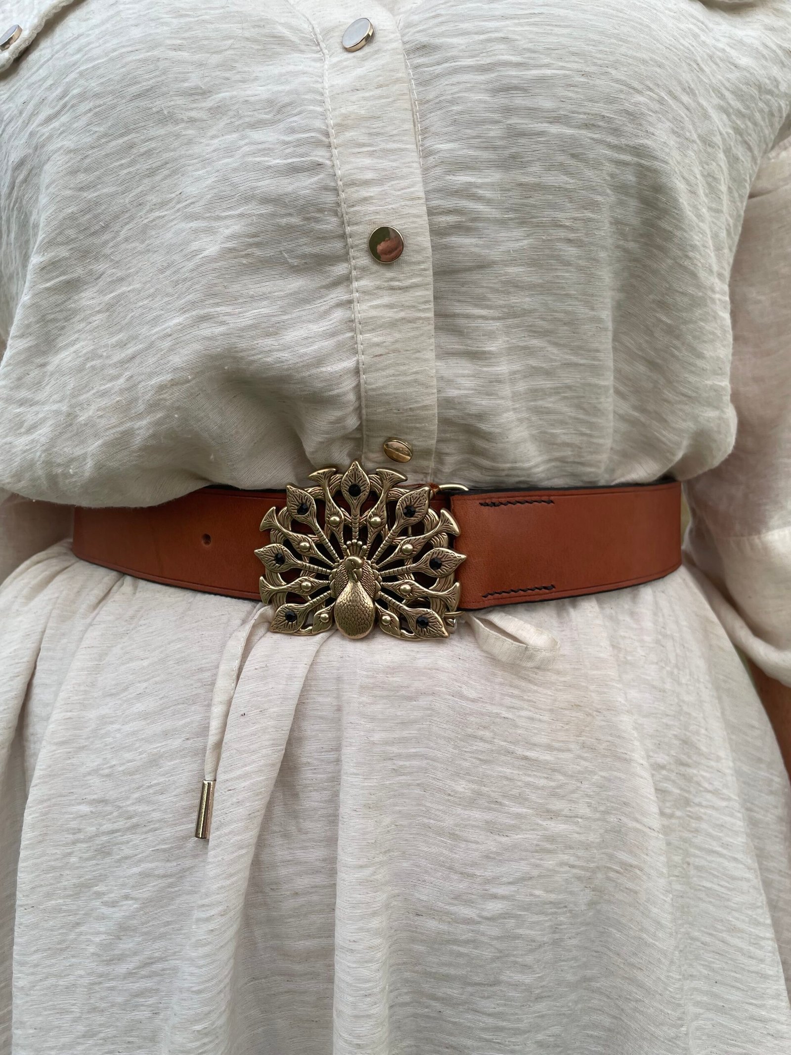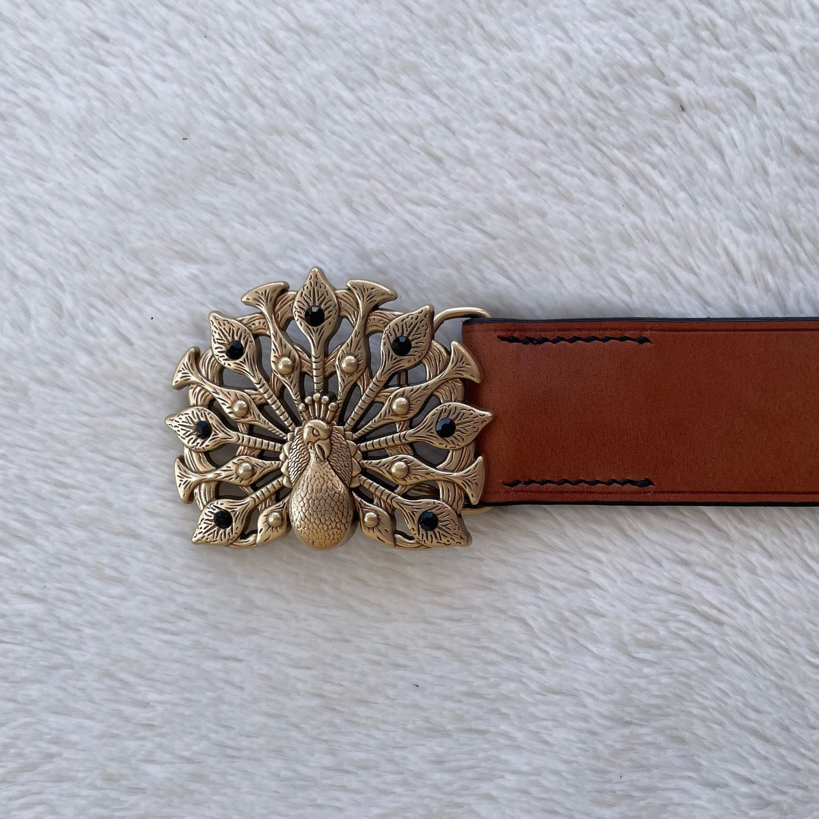 Création de ceinture avec une boucle de 40mm en forme de paon, en cuir végétal.
