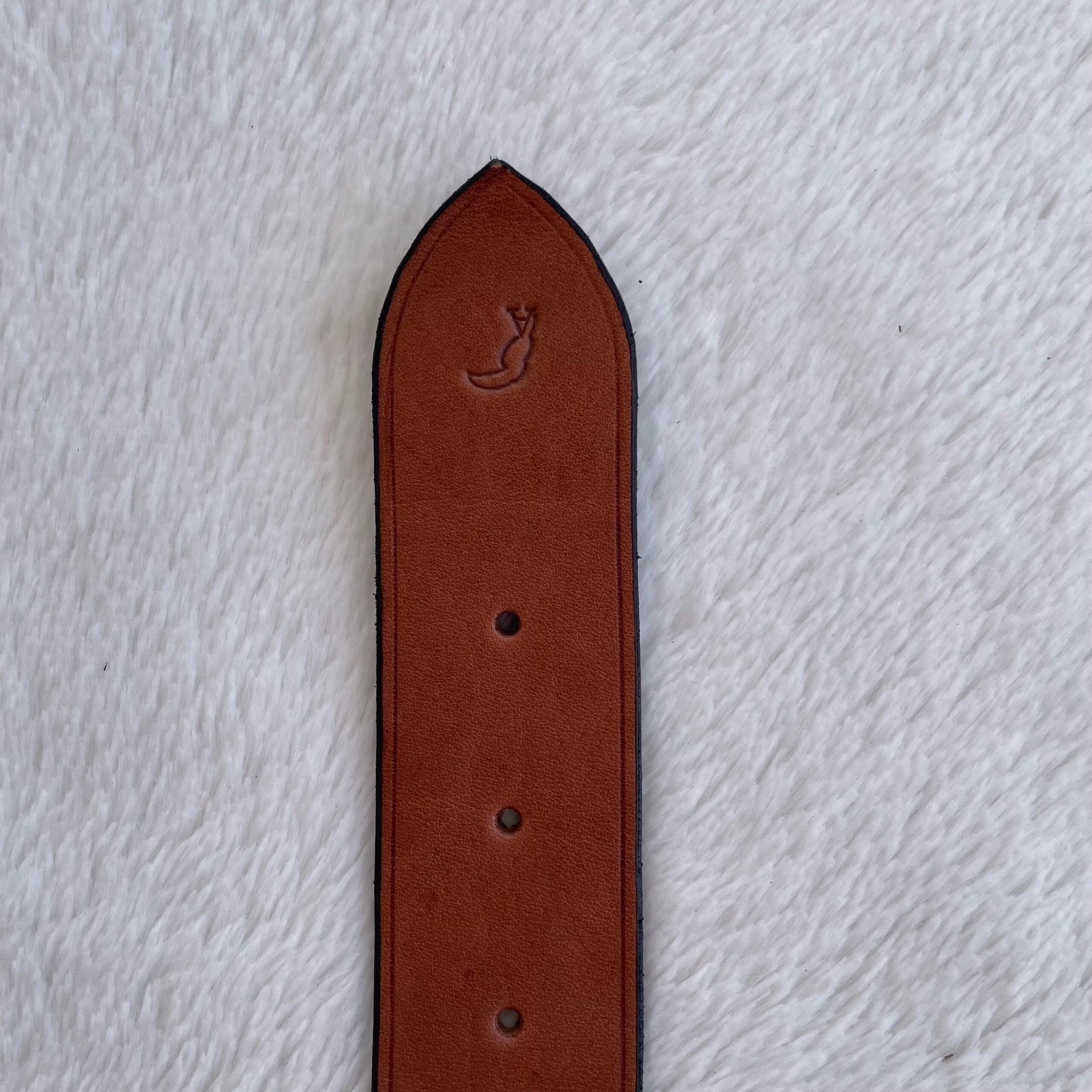 La ceinture est réalisée et cousue à la main. Le cuir est poncé, teinté sur les bordures en noir puis ciré à la cire d’abeille et chauffé.